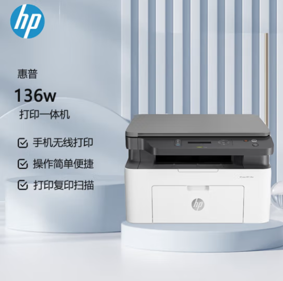 惠普(HP)136w 黑白激光多功能一體機(jī) A4黑白銳系列激光多功能一體機(jī) 無線打印 復(fù)印 掃描三合一 打印復(fù)印掃描 M1136升級(jí)款無線版